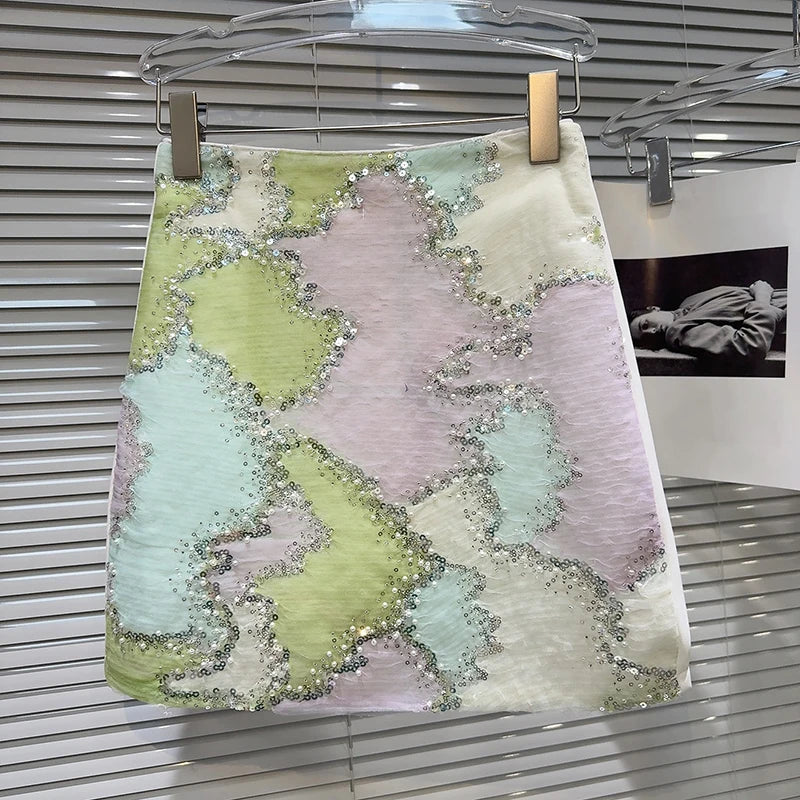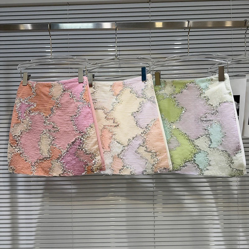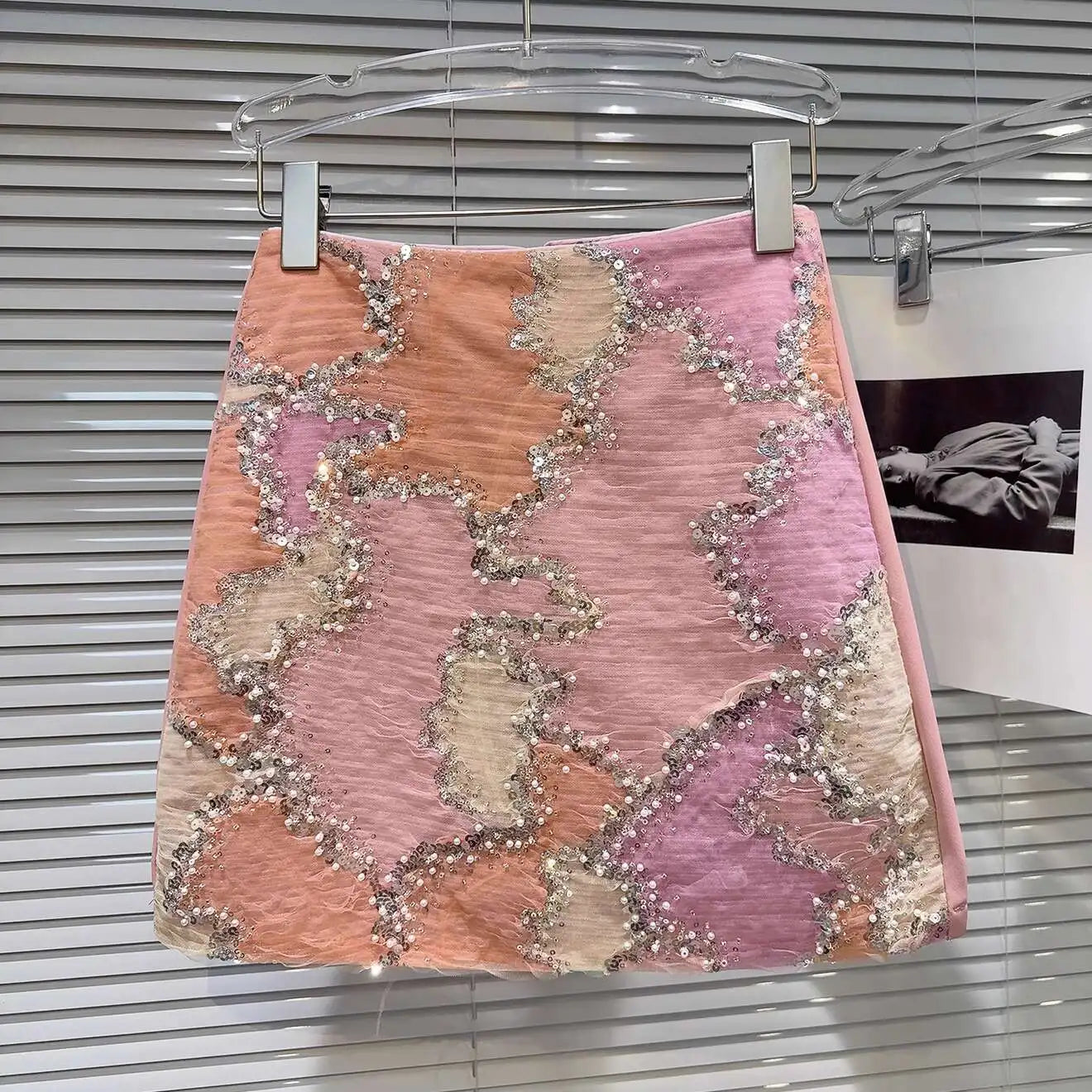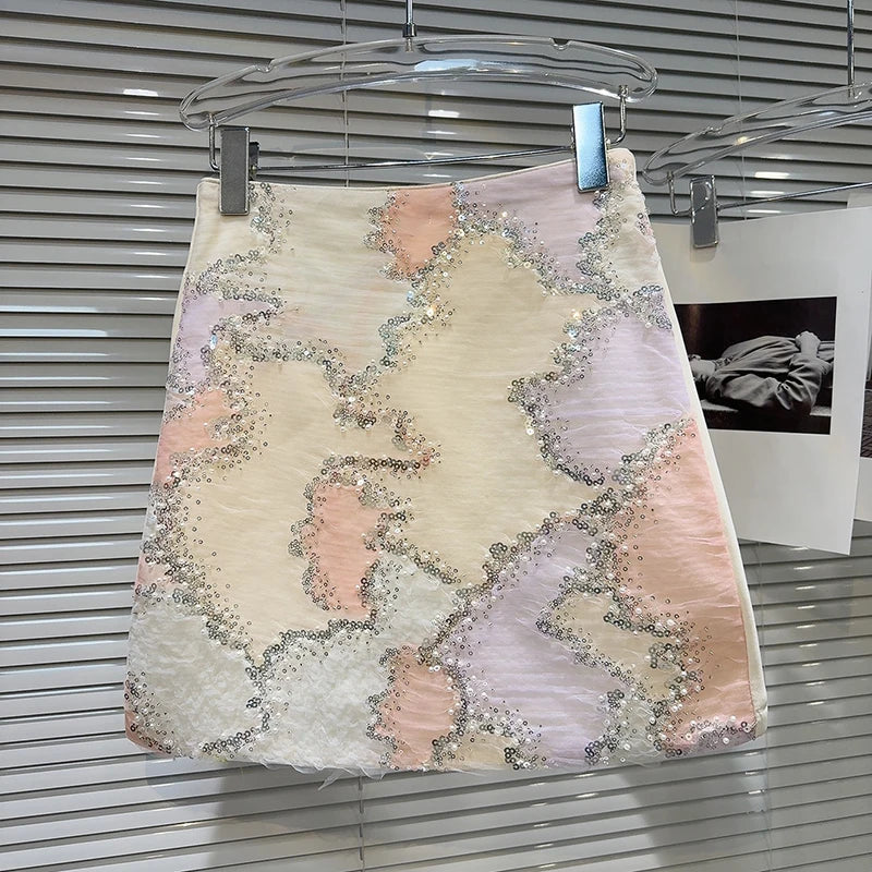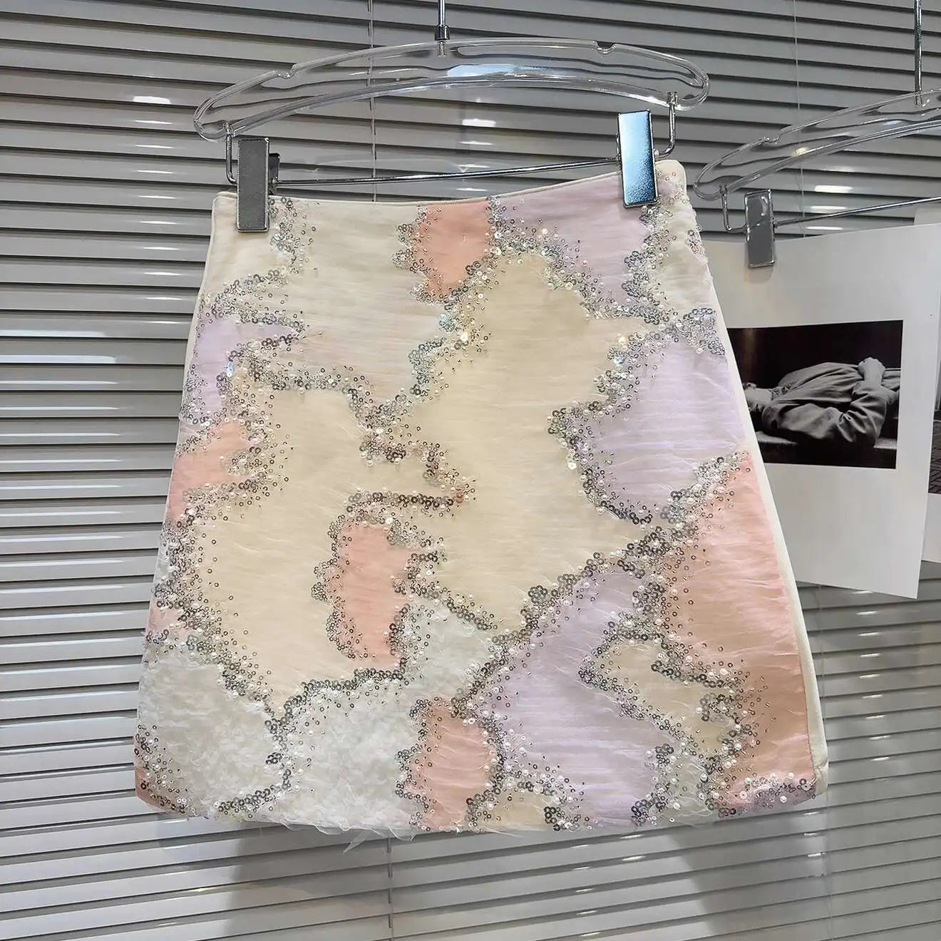 Turn heads with the Shimmer Pearl Mini, a statement skirt that perfectly blends elegance with playful sparkle. Crafted from high-quality polyester, this mini skirt features intricate pearl bead and sequin embellishments that catch the light with every move. The smooth inner lining ensures a comfortable fit, while the figure-flattering silhouette adds a touch of glamour to any occasion.