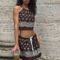 • Two-piece set: halter crop top + mini skirt